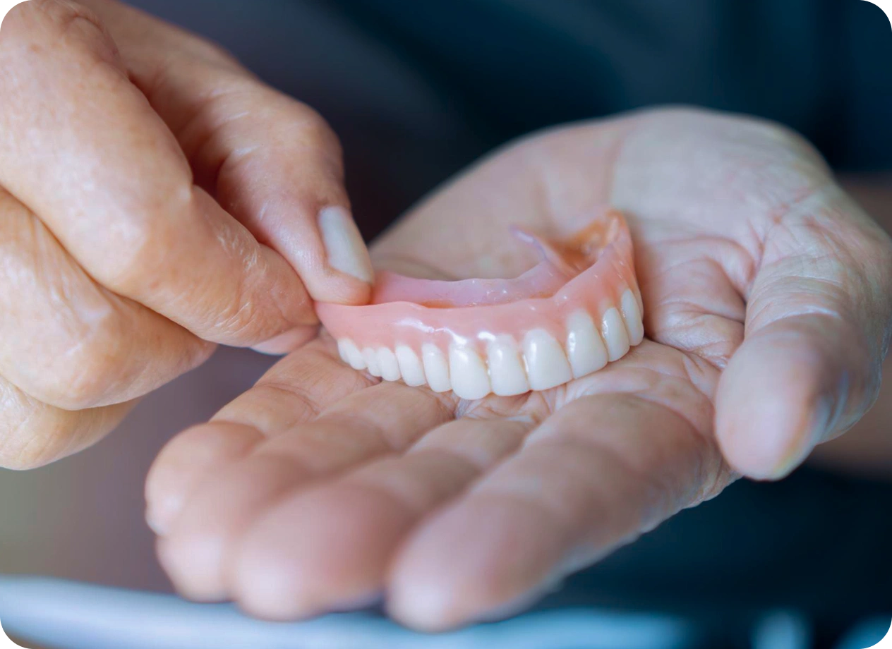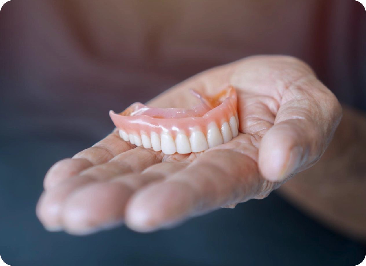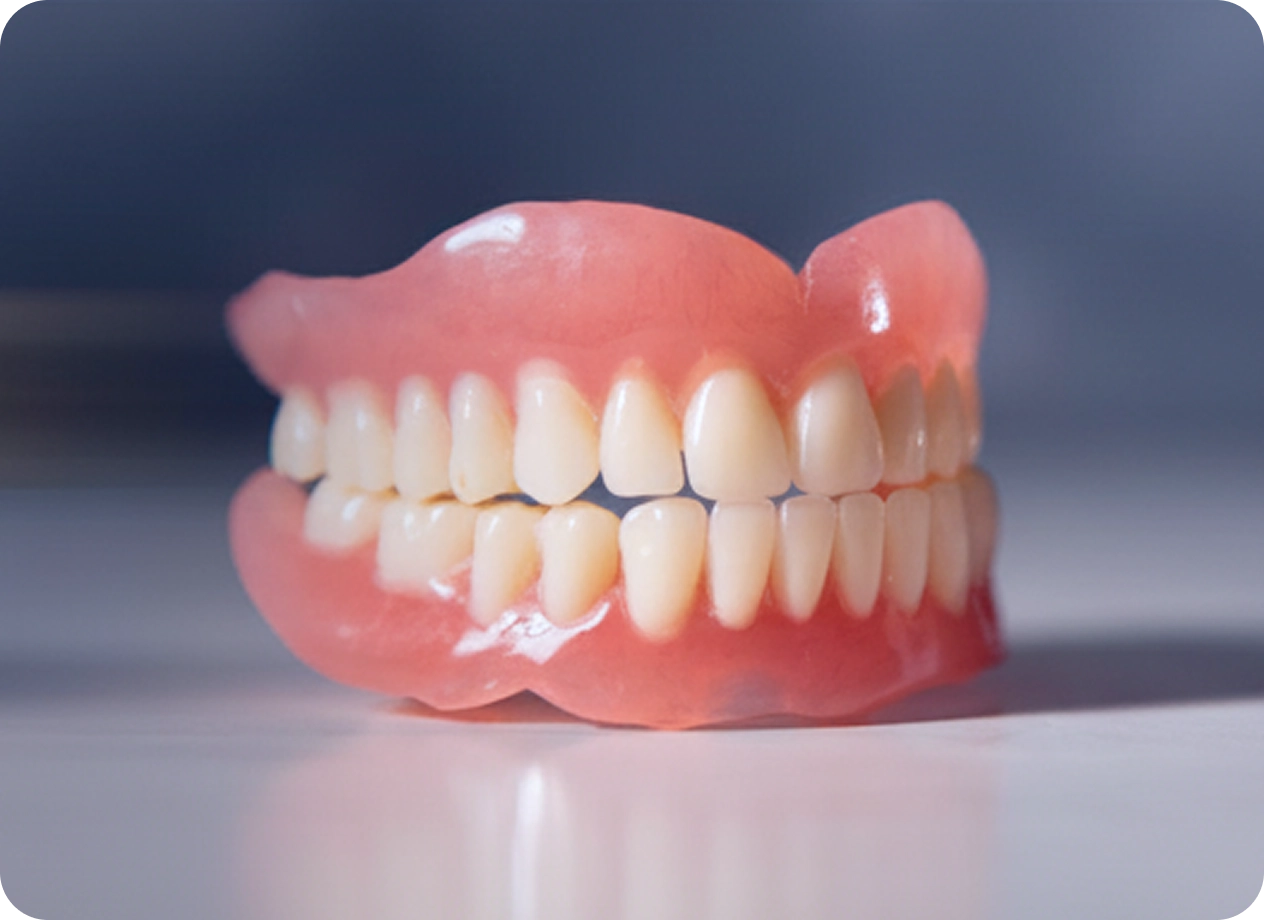 Your custom denture is fabricated or adjusted to complete your smile journey. Materials and shades are matched to your natural appearance.
