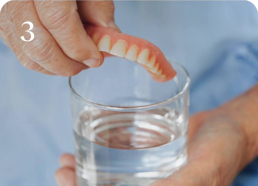 Place your dentures in a cleaning solution each night to deeply clean and help maintain their shape and fit.
